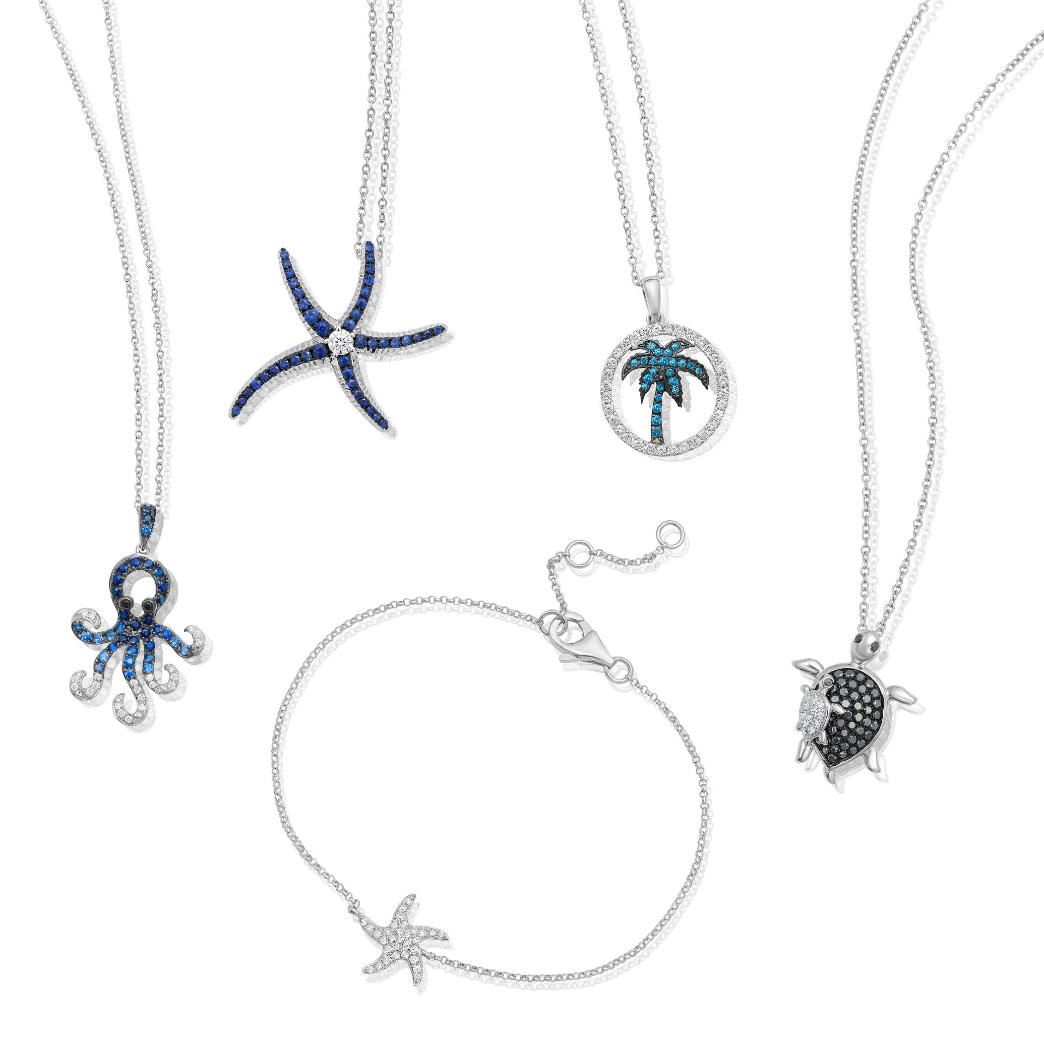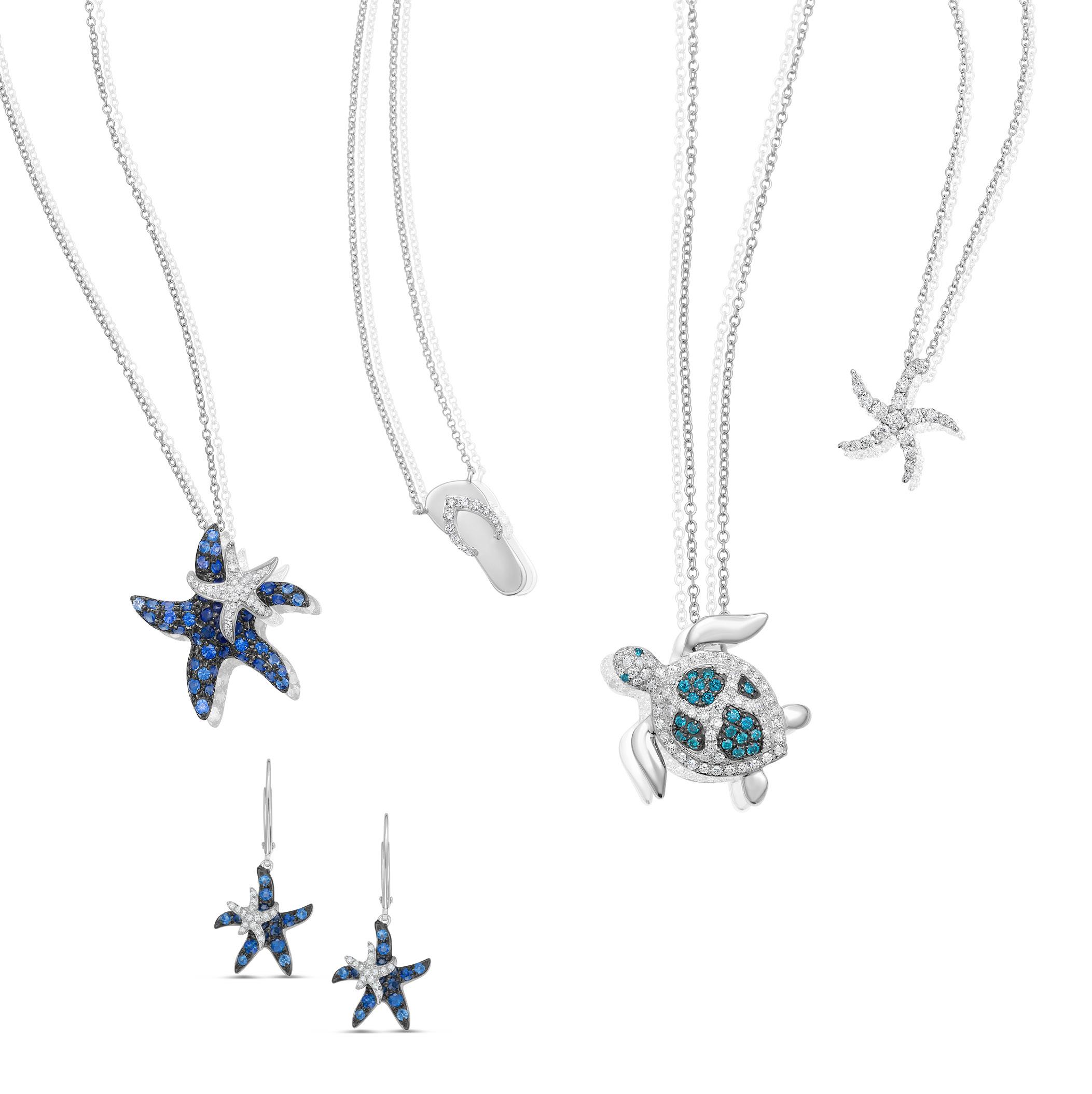 Sapphire & Diamond Starfish Pendant in 14K White Gold |D. 1/10 CTTW| SKU: 284610, 3341648