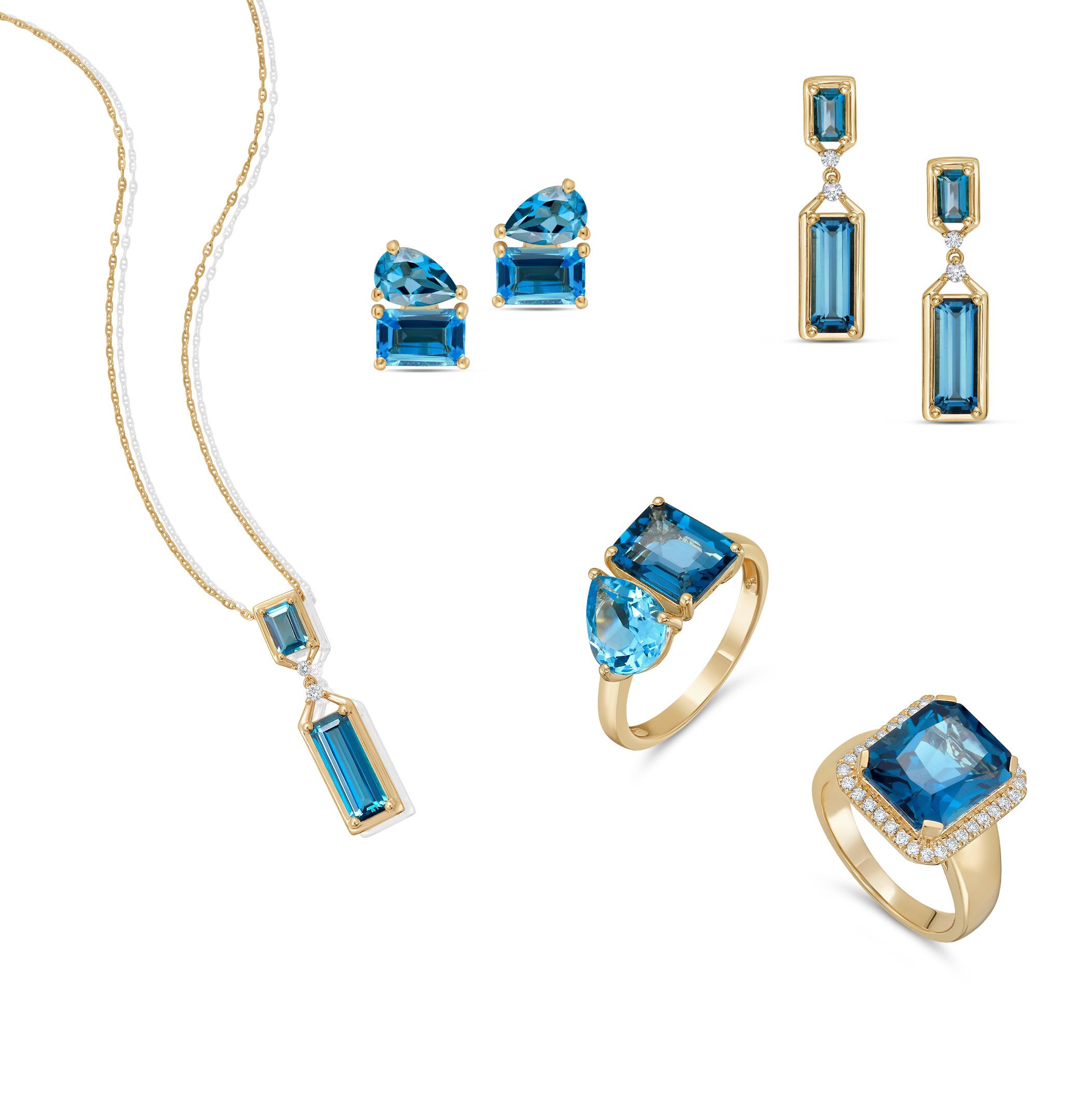 Swiss & London Blue Topaz Diamond Ring in 14K Yellow Gold |D. ¼ CTTW| SKU: 6905948