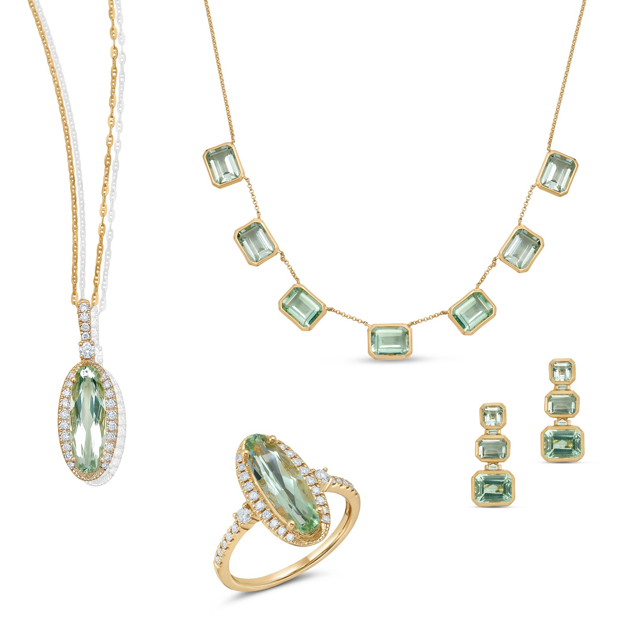 Green Amethyst & Diamond Pendant in 14K Yellow Gold |D. ¼ CTTW| SKU: 6905862
