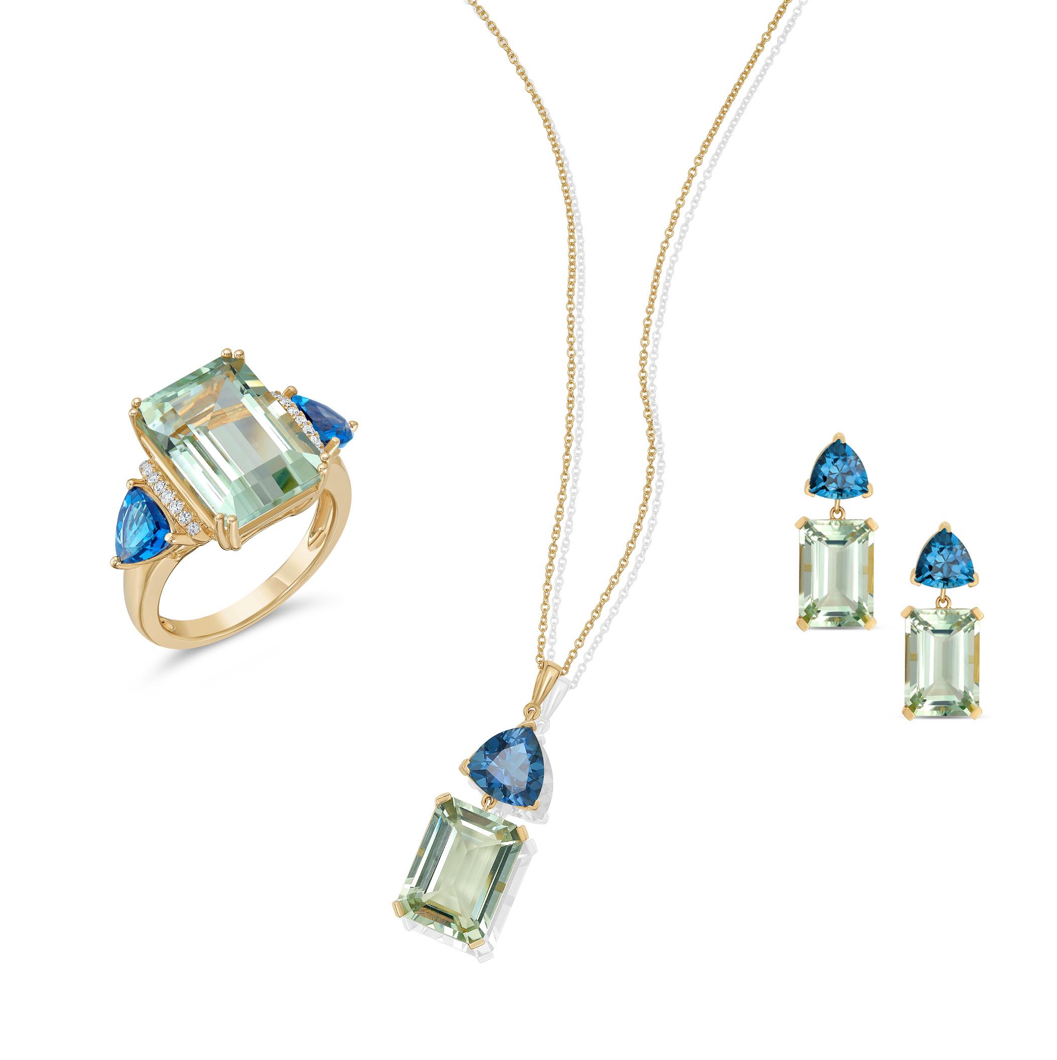 London Blue Topaz, Green Amethyst & Diamond Ring in 14K Yellow Gold |D. 1/12 CTTW| SKU: 6677311