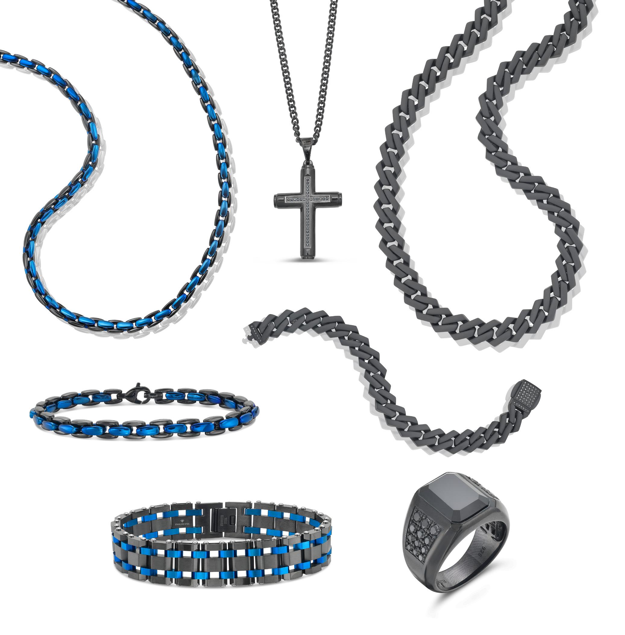 Black and Blue High Polish Bracelet in Stainless Steel SKU: 316770, 3348558