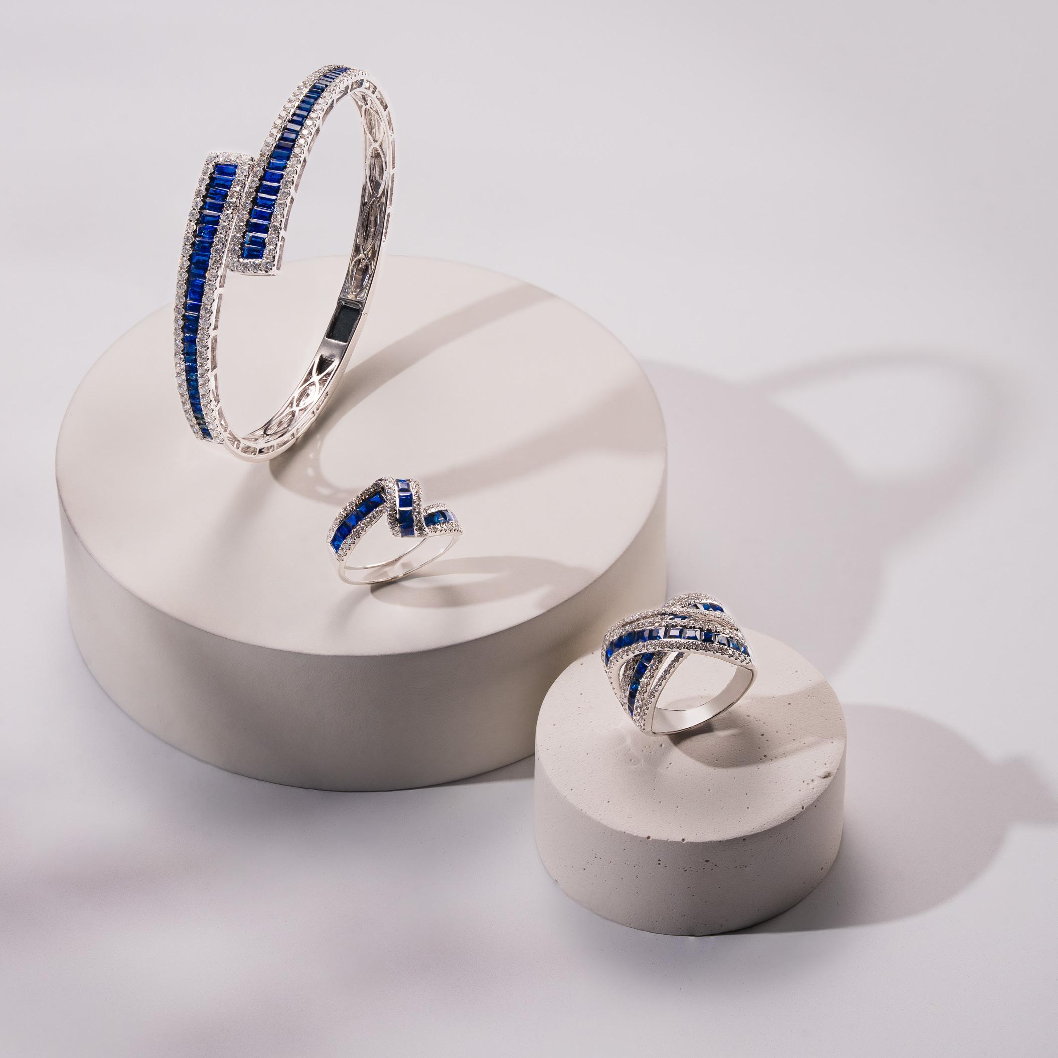 Sapphire & Diamond Flex Bangle in 14K White Gold |D. 2 1/5 CTTW| SKU: 6698706