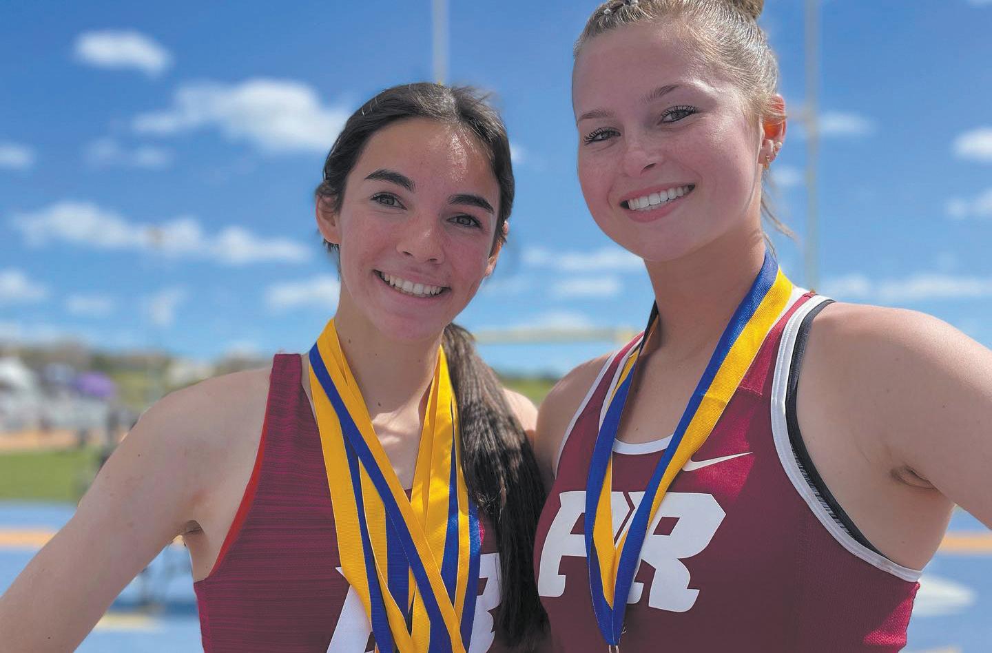 Payton Bedrosian (left) and Kylie Stroud are shown at the Central Coast Spring Classic, where Bedrosian was a top-three finisher in the long jump.