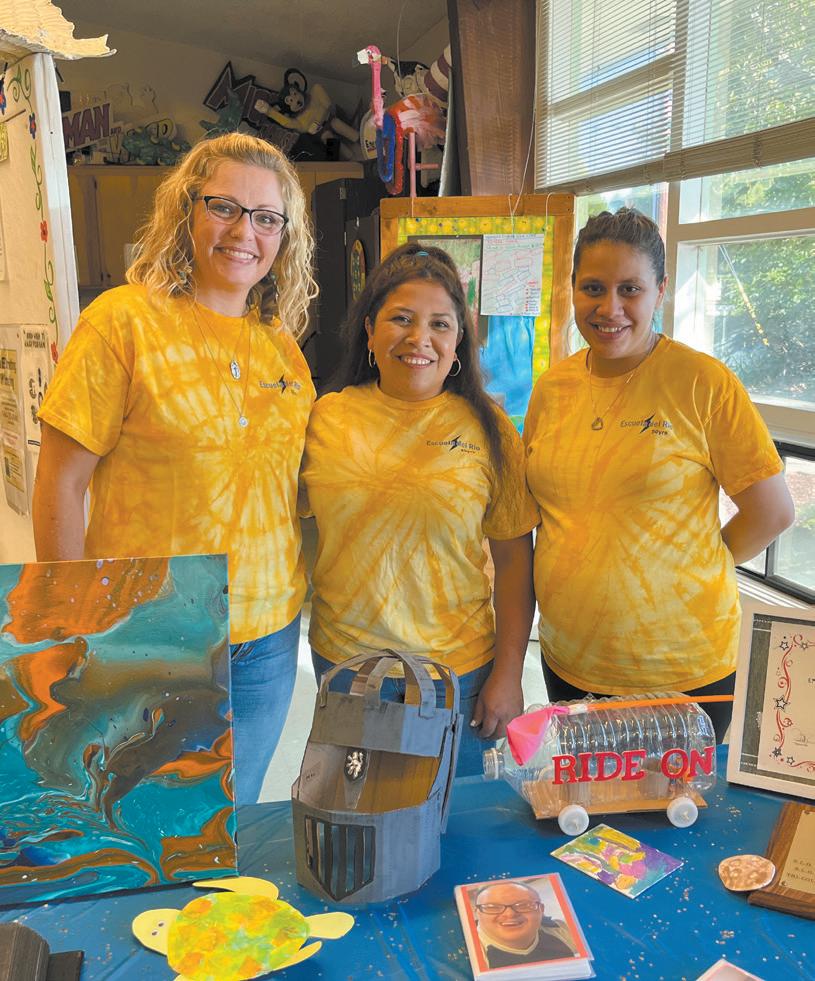 (From left) Shannon Jackson, Marbella Lizarraga, and Miriam Lizarraga stand at the EdR-START booth, with some of the art projects created by the program’s clients. Photo by Christianna Marks