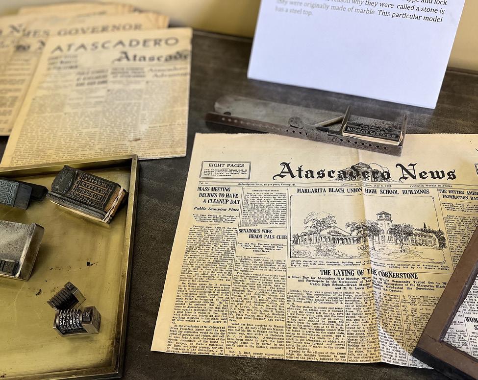 Starting in early September, the Atascadero Historical Society opened a new exhibit in Atascadero's historic City Hall. The exhibition features four large pieces of equipment used by the Atascadero News of old, with the hope to keep expanding the display over time.