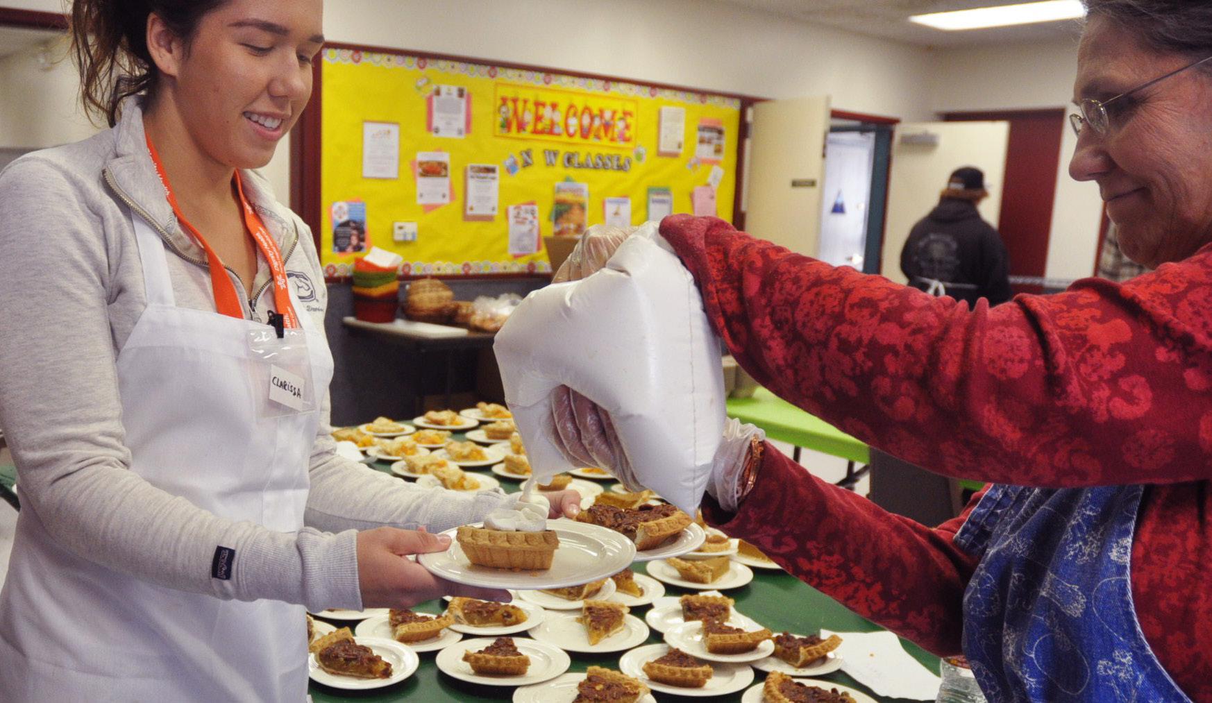 A celebration of thanks serving over 1,500 men, women, and children a traditional Thanksgiving meal at no cost. A true expression of community that brings diverse people together to share the day with others. All made possible through the generosity of caring individuals, students, organizations, churches, and businesses.