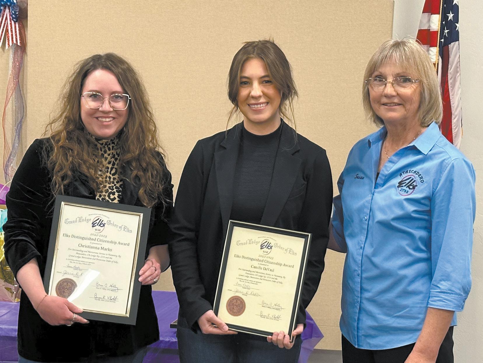 ATASCADERO — Two valued members of our Atascadero News team, Camille DeVaul, and Christianna Marks, were recently accorded the esteemed Elks Citizen of the Year award. This accolade acknowledges their extraordinary contributions to both our community and our organization, serving as a testament to their exceptional work and dedication.
