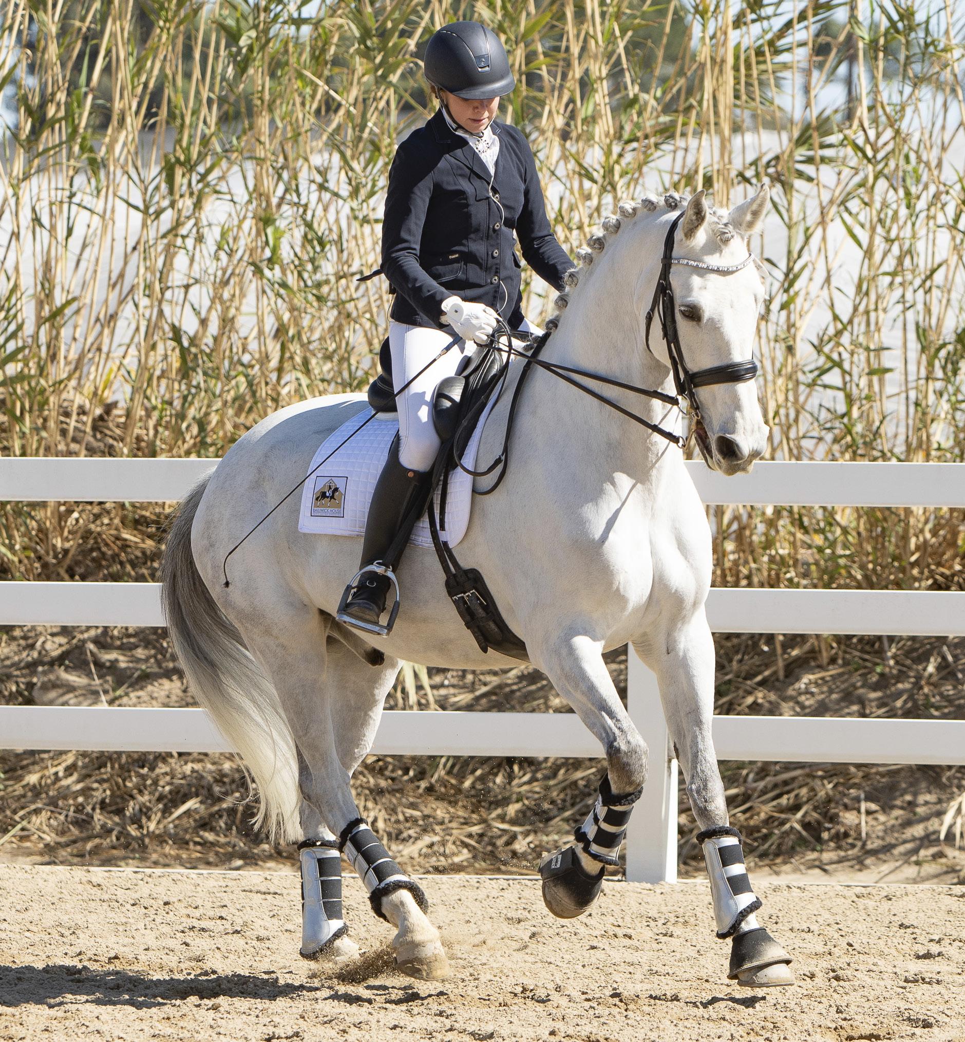 TOP: Sarah Phillips practices dressage with her trusty steed, Mr Evan. He loves to get gussied up for a show.