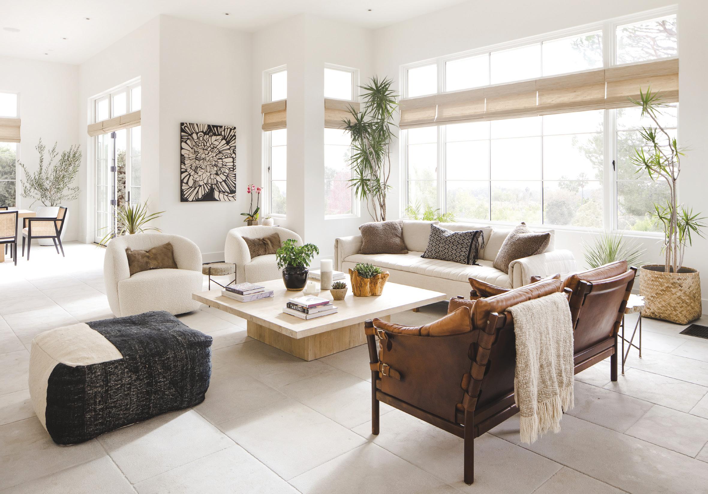 Private Residence, Bel Air, California. Ground-up build. Here, Wendy combines pieces from local resources, finishing the windows with natural woven shades from her own line of window treatments with smith and noble.