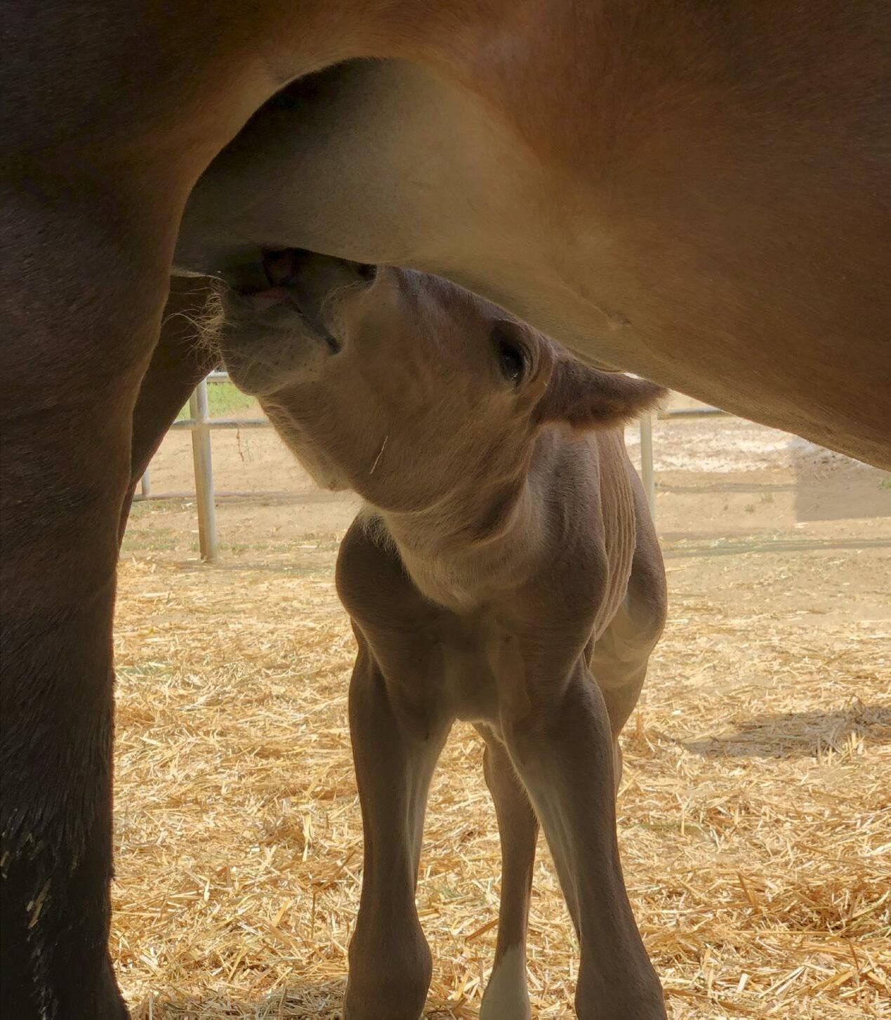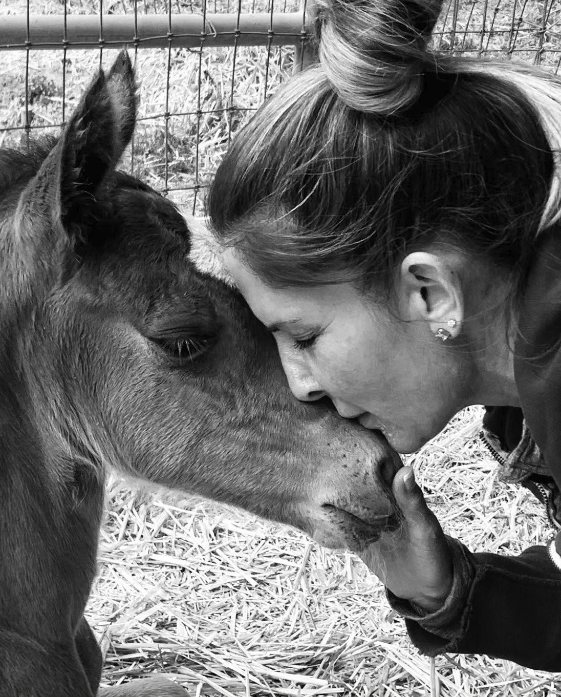 ABOVE: Bianca Lukasik welcomes newborn La Dulce Vida on her nose. TOP RIGHT: La Dulce Vida suckles milk from her mother, Montana. Montana is a Freesian quarter horse cross bread to Westphalian stallion Legit from Aquadulce. BOTTOM RIGHT: Beautiful baby foal La Dulce Vida poses for the camera. This little girl has a bright future ahead of her as Makenzie Lukasik’s next Eventer! HH