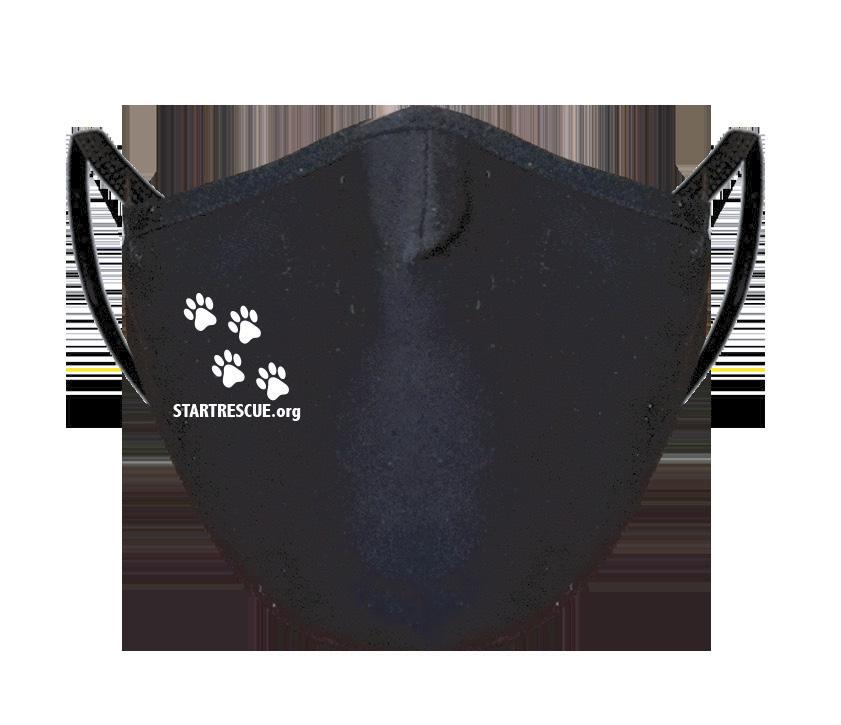 The incredible journey of a rescue dog who touched the lives of everyone one who met him. $24.95 hardbound book. Go to: startrescue.org/merch START wants you to be safe Adjustable mask made of 2-ply cotton with dart in center includes pocket to add the filter of your choice. Hand washable & silkscreened. $10 each or package of two for $18.00 Go to: startrescue.org/merch