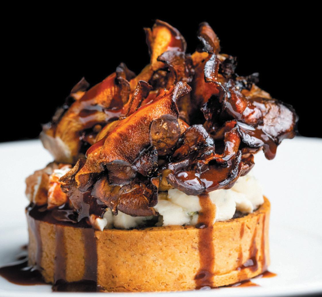 The menu itself is built around Mediterranean cuisine, ranging from appetizers like the Calabasas-exclusive “caviar” and housemade potato chips to more familiar entrees like Spaghetti Carbonara with a plant-based egg yolk that cracks just like a real one. “Just because we don’t use eggs, butter, cream, meat, or fish, we can still create those flavors. For example, our calamari is made out of king oyster mushrooms, and we get that ocean flavor by infusing seaweed into it. And in our breading for the calamari, we use Old Bay seasoning, which people associate with seafood. There’s lots of little tricks.” And these maneuvers are exactly what have kept vegan and nonvegan clientele equally satisfied, with the familiar flavors being so deftly imitated that many guests have wined and dined without ever realizing the restaurant is plant-based. Alongside a wide selection of delicious food, Crossroads boasts a full-scale bar with handcrafted, unique cocktails as well as customer favorites, including an extensive wine list. Of course, dessert indulgences are available as well, like Chef Ronnen’s infamous take on a classic brownie ice cream sundae.