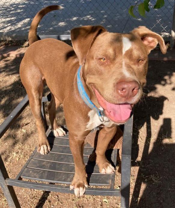OVER 460 DAYS in shelter. This beautiful boy is so good that he is a “Helper Dog” for new dogs….and considered to be the best!! Yet, he still waits for a real home for over a year. Good and attentive on leash, he loves people & adapts to other dogs play levels. His challenge is that he needs a fence of 6 1/2 feet tall. He is best friends with Sally.