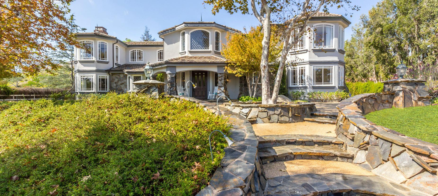Model sharp Mediterranean in the prime Ashley Ridge section of Hidden Hills. Step through the iron & glass entry doors into a world of refined elegance. Gorgeous, honed stone floors, and a dramatic two story entry with double staircase beckons. Highlighted by excellent quality throughout and featuring an open floor plan, this custom home shines. An extensive remodel has just been completed with amenities that include a brand new kitchen, opening to the family room, plus game room, bonus room, theatre, office/study, wine cellar, separate guest house and gym. All bedrooms are en-suite, with the spacious master suite offering a retreat, hardwood floors, stone bath, two large custom closets, fireplace, and balcony. Set on over an acre of lushly landscaped, private grounds with a sparkling, stacked stone pool, spa, large covered patio with inlaid stone decking, fountains, mature trees, basketball area, circular driveway, expansive courtyard parking, and six-car garage behind electric gates.