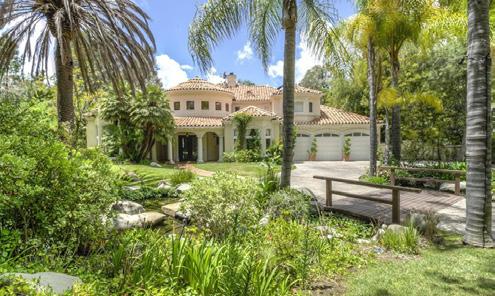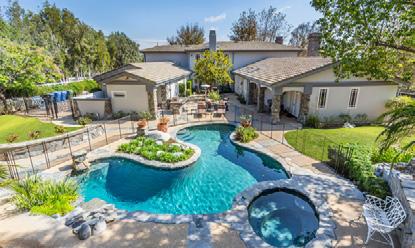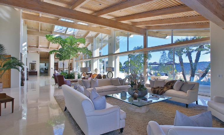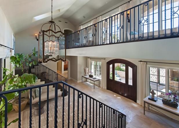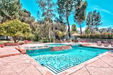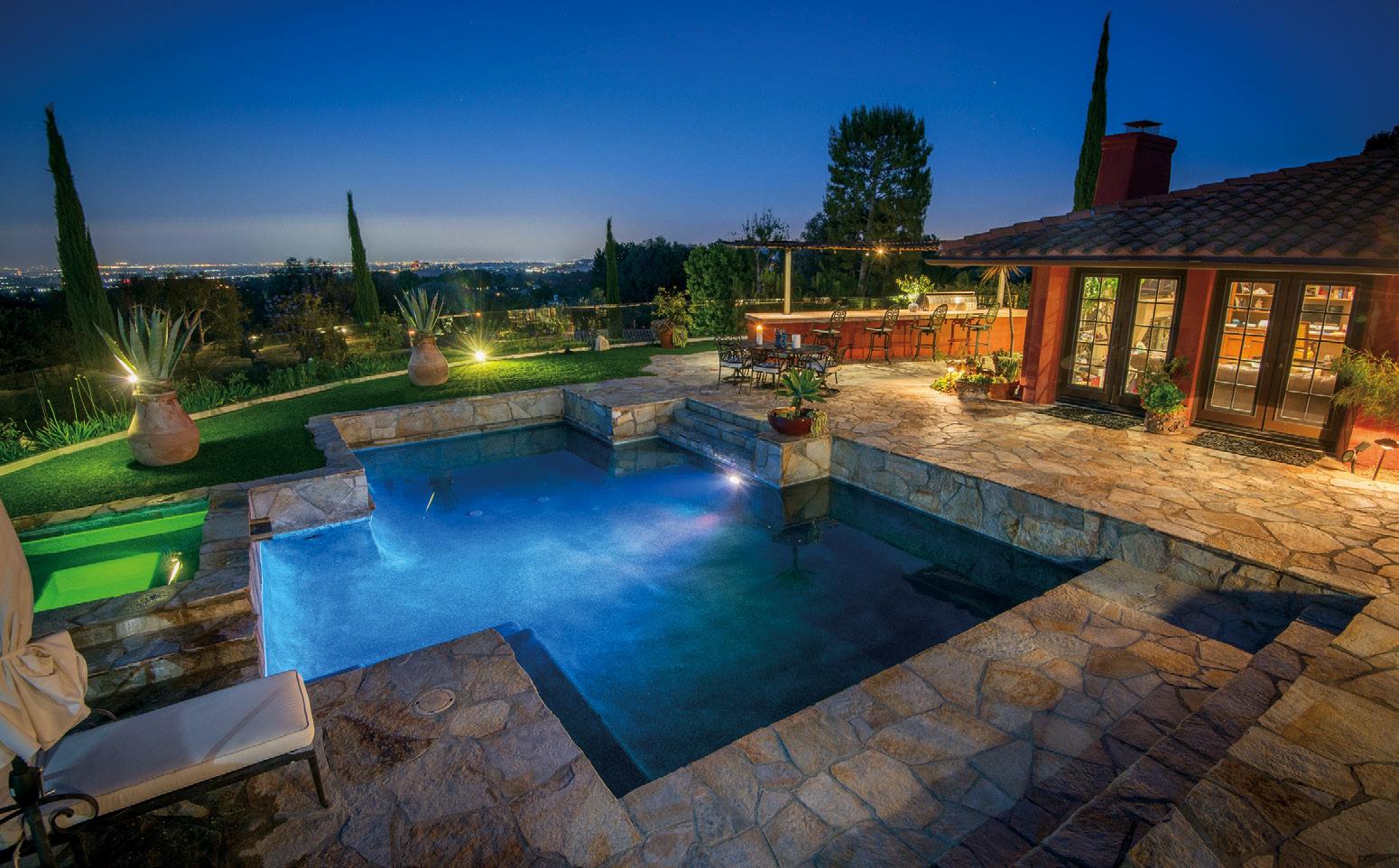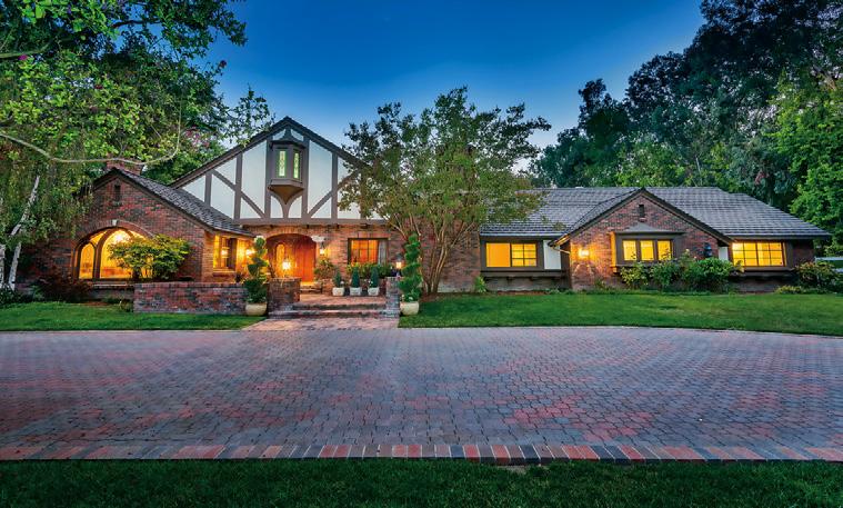 Located within the renown, exclusive, guard-gated community of Hidden Hills, this timeless Spanish estate conveys a sense of casual elegance with graceful proportions while offering an informal fl oor plan where rooms fl ow effortlessly and out to an abundances of loggias, terraces and beautiful gardens. With over 6,600 square feet of luxurious living situated on nearly two acres at the end of a private cul-de-sac, this rare estate offers beautiful, handcrafted architectural detail throughout, gourmet kitchen with center island, formal dining room, formal living room with walls of windows, and separate, casual family room with wet bar. A second family room perfectly combines the kitchen and family room with built-in breakfast nook tucked underneath a large bay window overlooking the rear grounds. The grounds offer extensive entertainment opportunities. BBQ center with full outdoor kitchen and countertop eating, three separate fi re pits with decorative glass, Baja-style pool with built-in pool bar, and a 1,000 square foot cabana with fi replace, built-in entertainment system, outdoor shower, and al fresco patio dining area. The second fl oor is dedicated to a private master suite with vaulted beam ceiling, fi replace, private balcony and covered veranda. The sumptuous Master bath is a complete oasis with an oversized large steam shower, soaking tub, water closets, and two walk-in closets. Four secondary en-suite bedrooms are located downstairs. Bonus room with separate entrance is perfect for home offi ce, recording studio or gym.