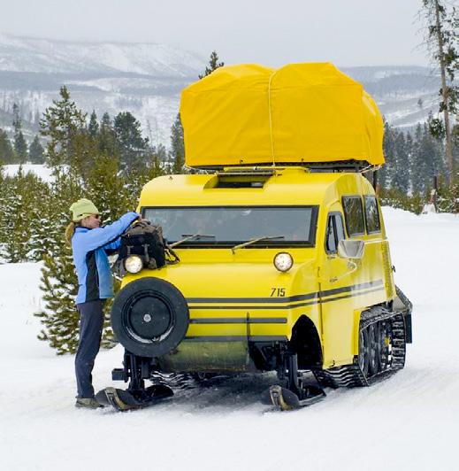 4) A VINTAGE SNOW COACH. DURING WINTER, THIS AND SNOWMOBILES ARE THE ONLY WAYS TO TOUR YELLOWSTONE