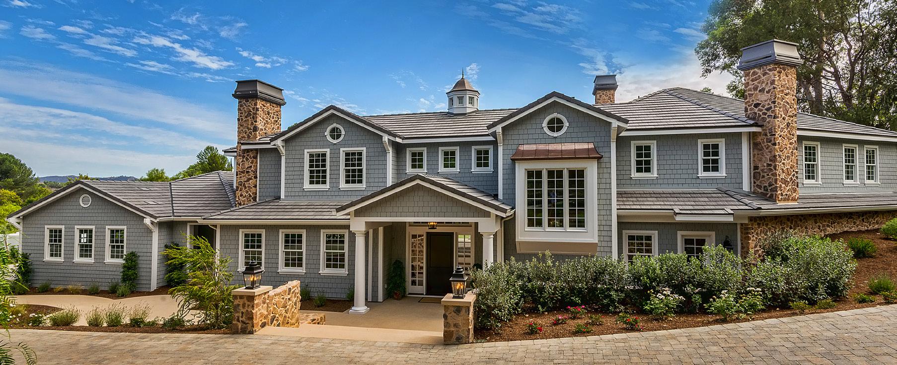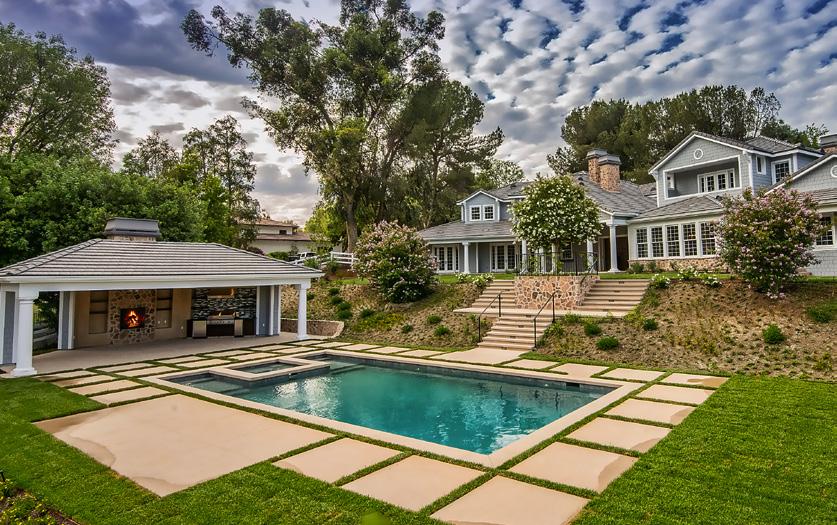 Inspired by the great turn-of-the-century summer estates in the Berkshires of Western Massachusetts, Newly completed Tanglewood Farms captures the grace and refinement of a bygone era. Set in a bucolic valley, this shingle-sided farmhouse nestled in the heart of Hidden Hills encompassing over 2 acres is styled with entertaining in mind, merging the best of New England charm and California informality.