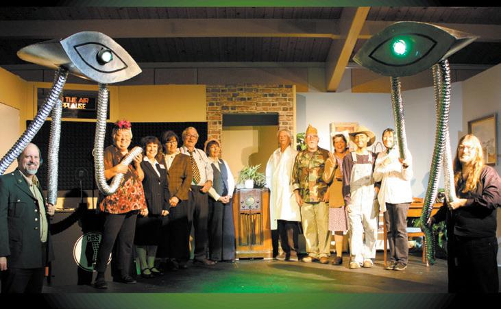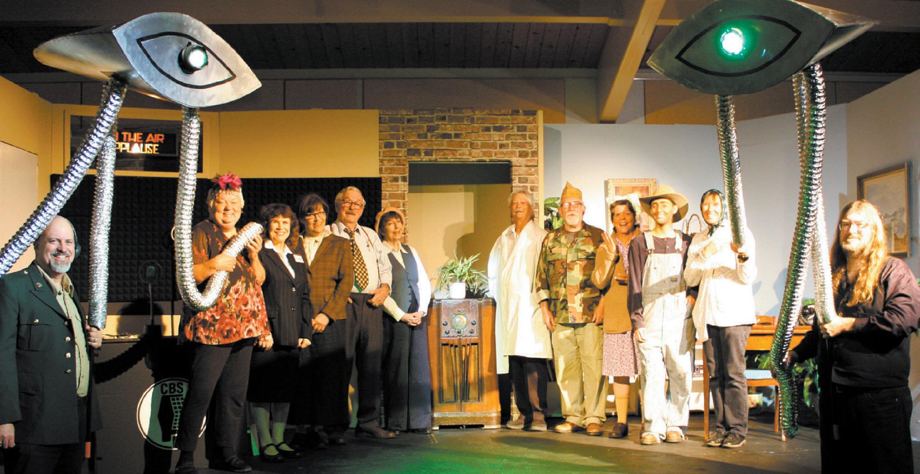 Members of By The Sea Production (BTSP) theater company are shown on stage for a re-enactment of the “War of the Worlds” radio play. Photo by Blake Ashley Frino-Gerl