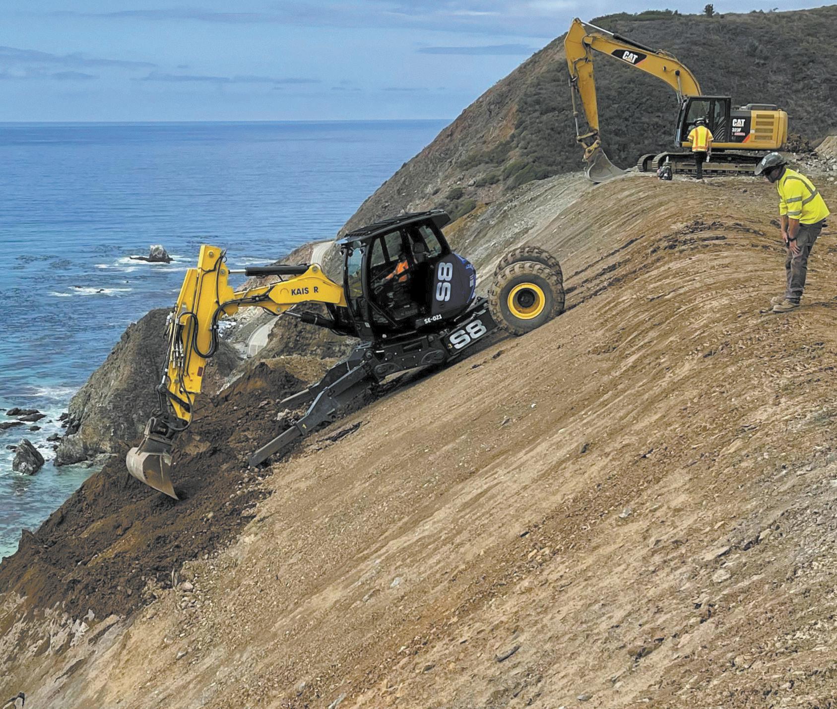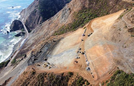 • Remote-controlled heavy equipment. “Working with Caterpillar Inc., Caltrans deployed remotely operated bulldozers and excavators, controlled from a safe distance, allowing excavation to continue during periods of heightened geologic risk.”