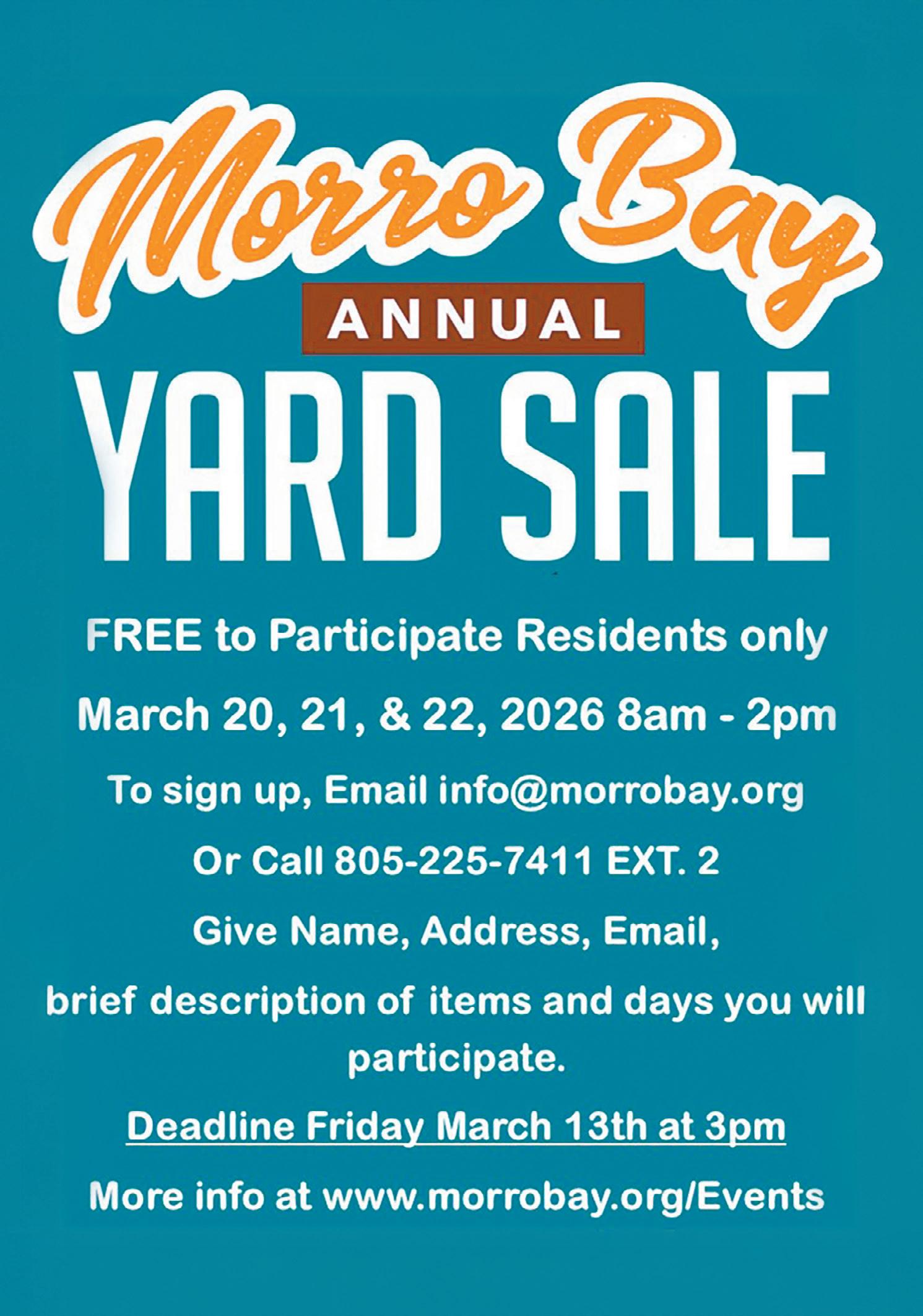 Shop neighborhood yard sales throughout Morro Bay; sale map available March 17 for bargain hunters.