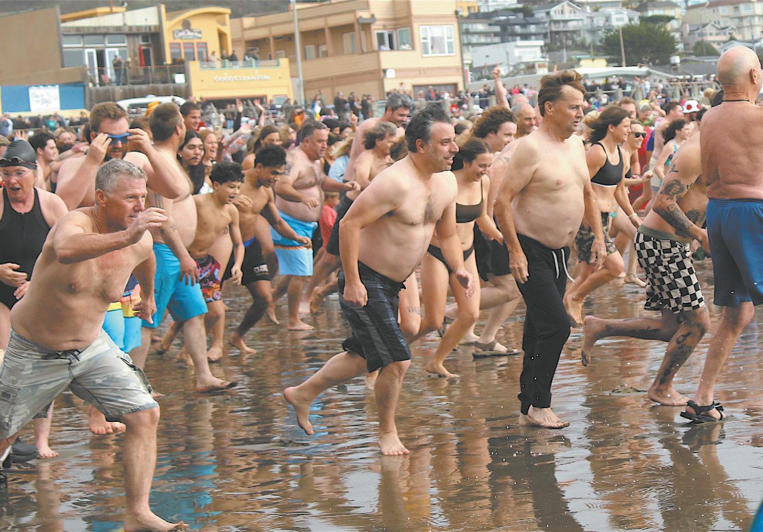 Hundreds of people lined the Cayucos Pier5 to watch an estimated 3,000-plus Polar Bear Dippers rush the waves to wash away 2025 and welcome in 2026.