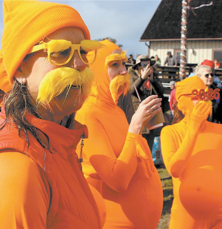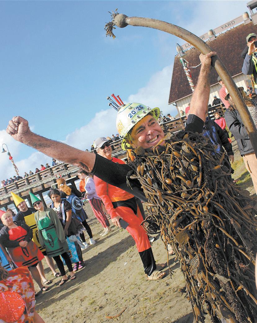 Rainy skies didn’t dampen the spirit of thousands of folks who turned out for the 46th Annual Carlin Soulé Polar Bear Dip in Cayucos on New Year’s Day. As is custom, the day started early as dippers trickled onto Cayucos Beach, many wearing crazy costumes and toasting the start of 2026 before the noon dip into the 57-degree Pacific Ocean.
