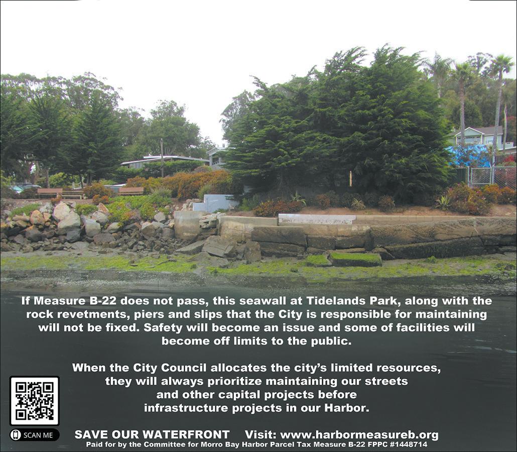 2: This tax climbs; it is not staying at $120. The annual increase varies each year depending on inflation. It increases exponentially, which means faster. 3: “Preventative maintenance” is a vague term. Cleaning is a maintenance task; funds could be diverted to pay for cleaning restrooms. 4: The $680,000 is a drop-in-the bucket. Infrastructure costs multi-millions of $$. 5: State and federal money pay for infrastructure. Due to the quantity of money required, grants and loans are the typical way to fund these projects. 6: It’s possible to get government money. Morro Bay just received two grants specifically for the Harbor Fund. 7: Those who use should pay. There is no link between owning property in Morro Bay and using its Harbor facilities. 8: Taxation without representation. Property owners who do not live here do not get to vote on the measure. Answer continued at morrobaylifenews.com