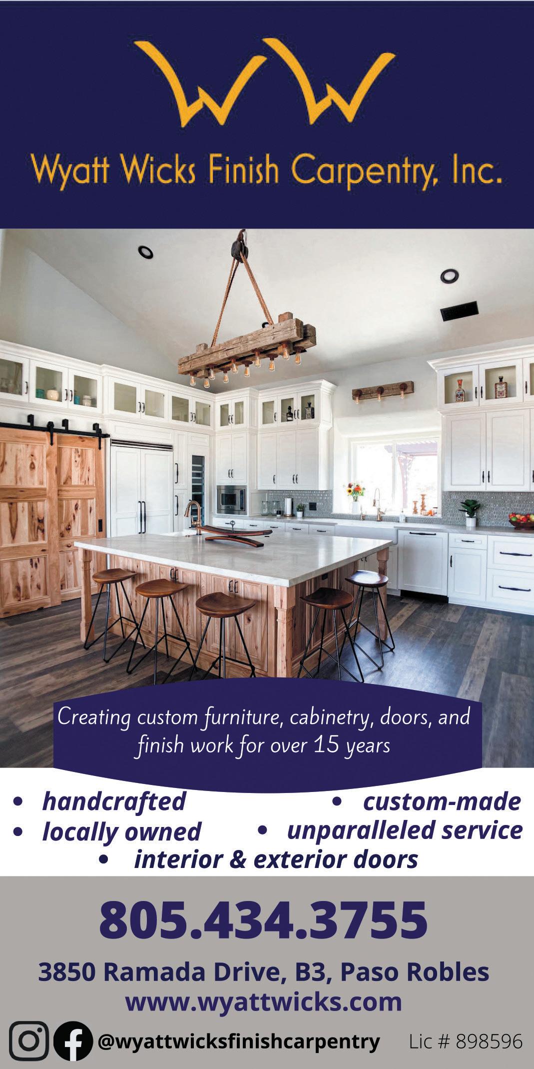 OUR NEXT ISSUE: OFFICE 5860 El Camino Real Ste G, Atascadero, Ca 93422 MAIL P.O. Box 427 Paso Robles, Ca 93447 PASOROBLESMAGAZINE.COM office@13starsmedia.com • (805) 237-6060 SUBSCRIPTIONS Annual subscriptions are available for $29.99 Subscribe online at pasoroblesmagazine.com