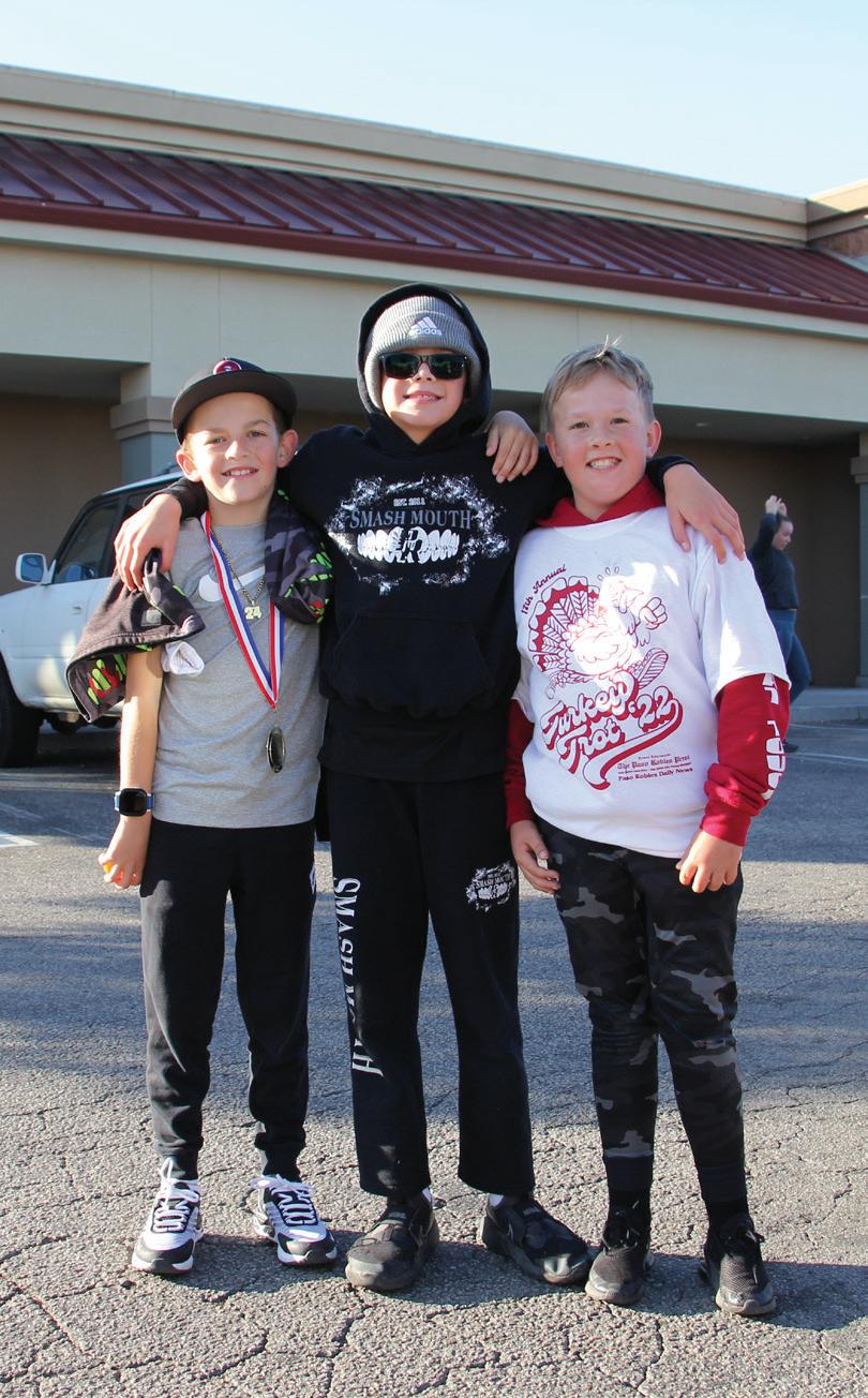 (From left) Jack Machado, Jaden Jensen, and Connor Betz are all smiles after they ran in the 5K. Photo by Camille DeVaul/PRP