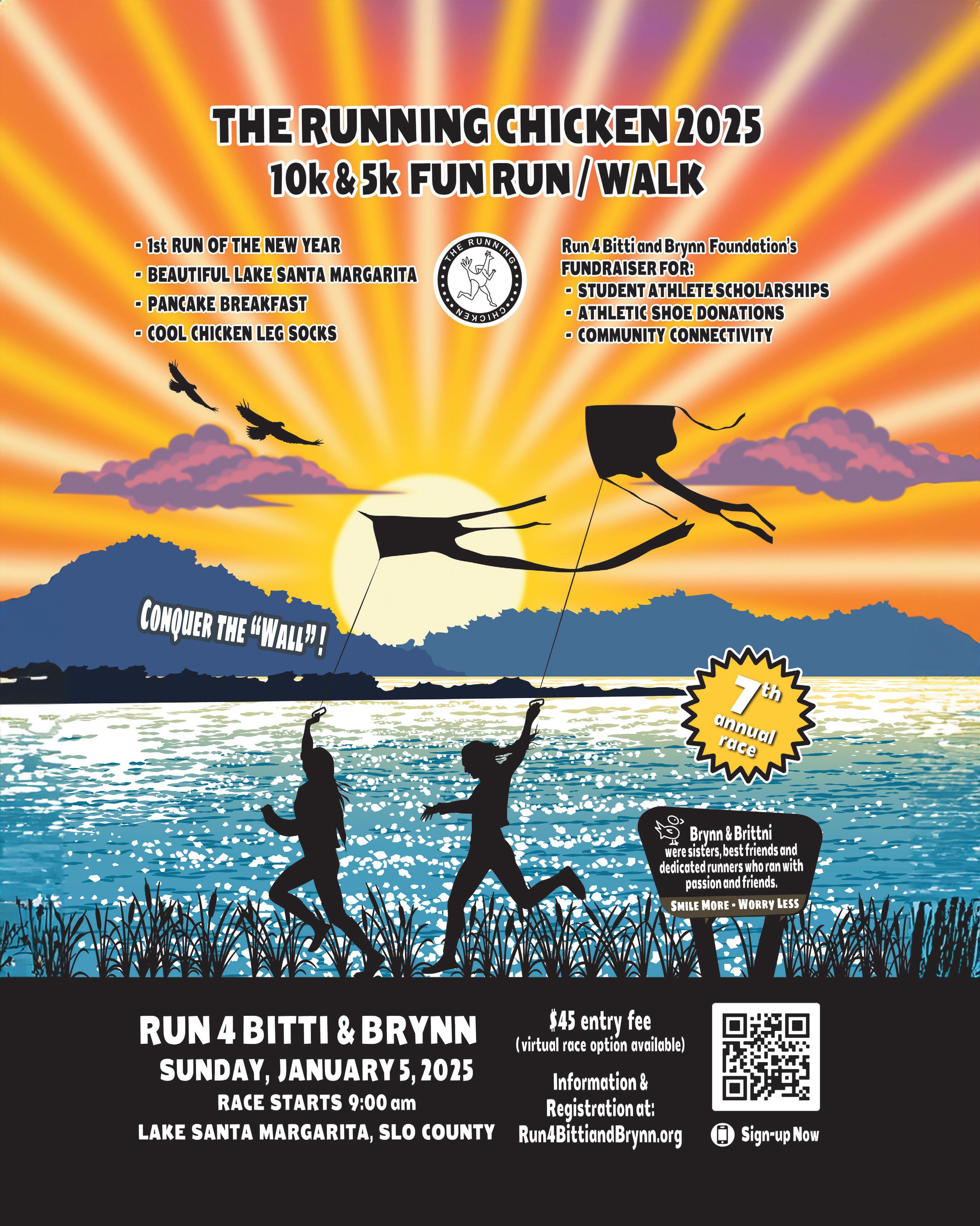 Join us for a 5K fun run/walk on Thanksgiving morning at Atascadero Lake Park Bandstand at 8:30 a.m. Be sure to wear your best turkey costume as there will be prizes for adults, children and pets!