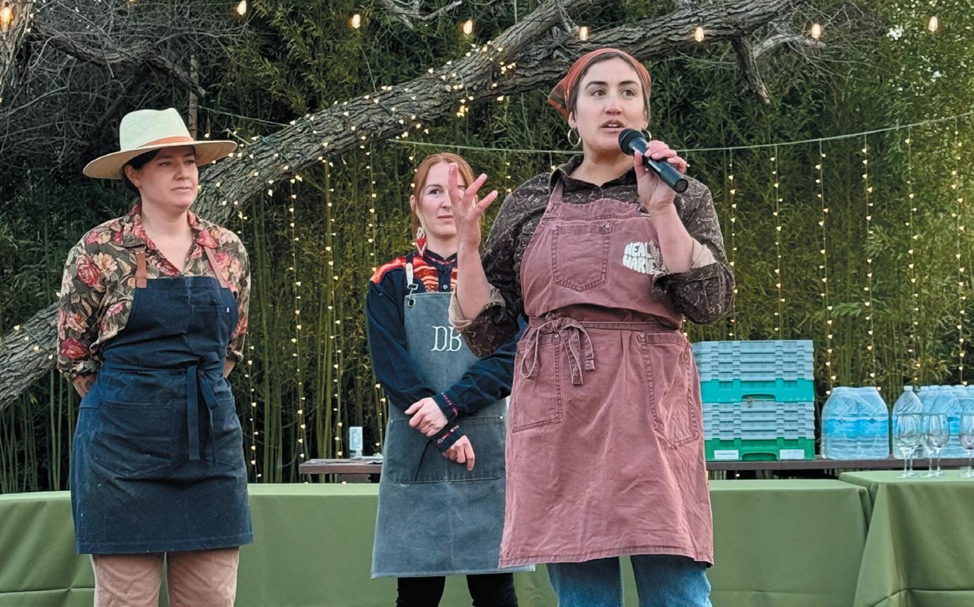 Feature chefs from the At Her Table Untamed Dinner on Sunday, March 9 (from left): Chef Marleigh Dunlap, Chef Dominique Benavidez, and Chef Karen Hutchison speaks to the crowd about her dish and being a part of the event. Photo by Camille DeVaul/PRP