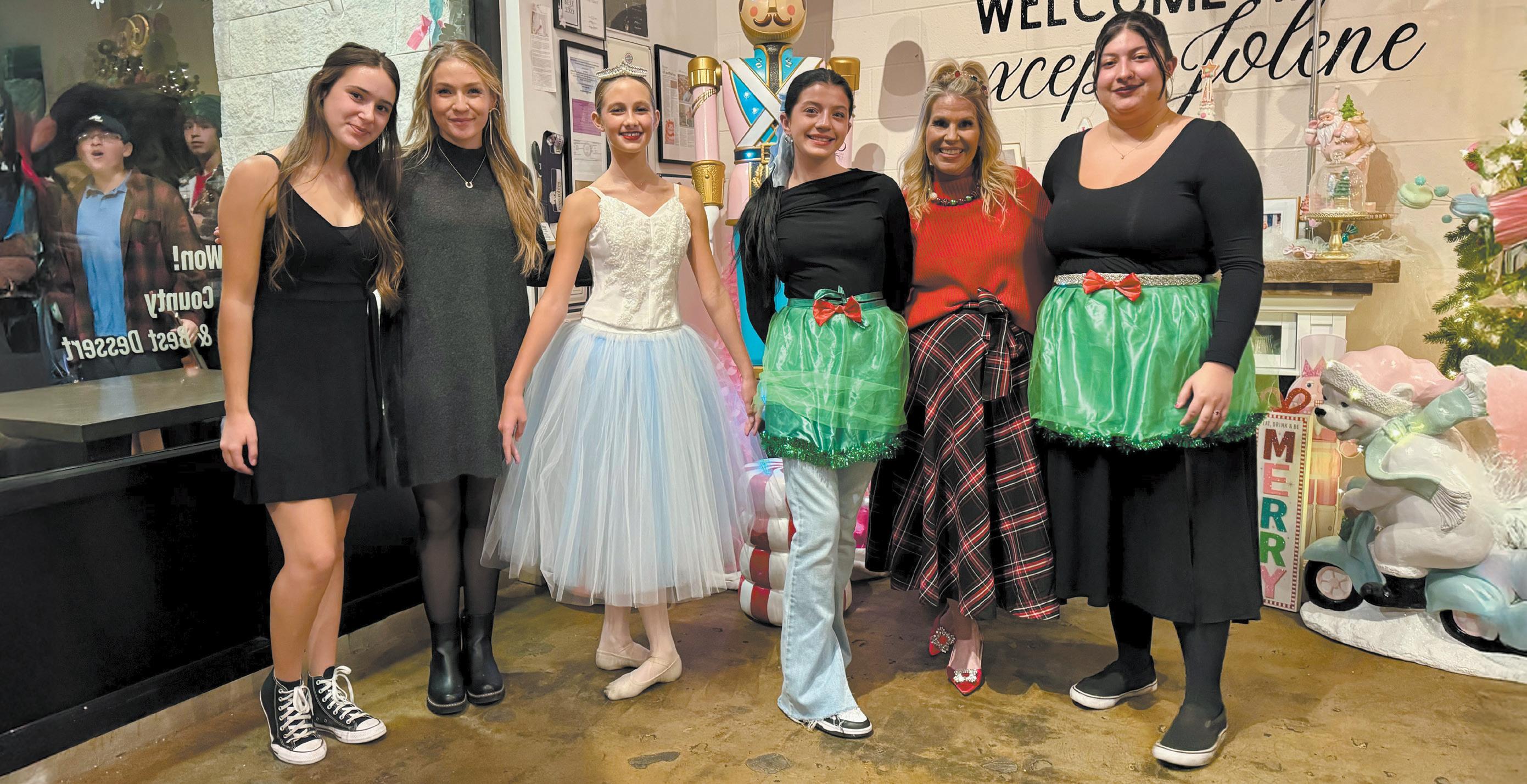 (From left) Just Baked staff Mya Hunnam, Emily Cockrum, Nutcracker Snowflake Ava White, Sydney Bruszer, Just Baked Owner Libby Ryan and Kaitlyn Rodriguez. Photo by Camille DeVaul/PRP