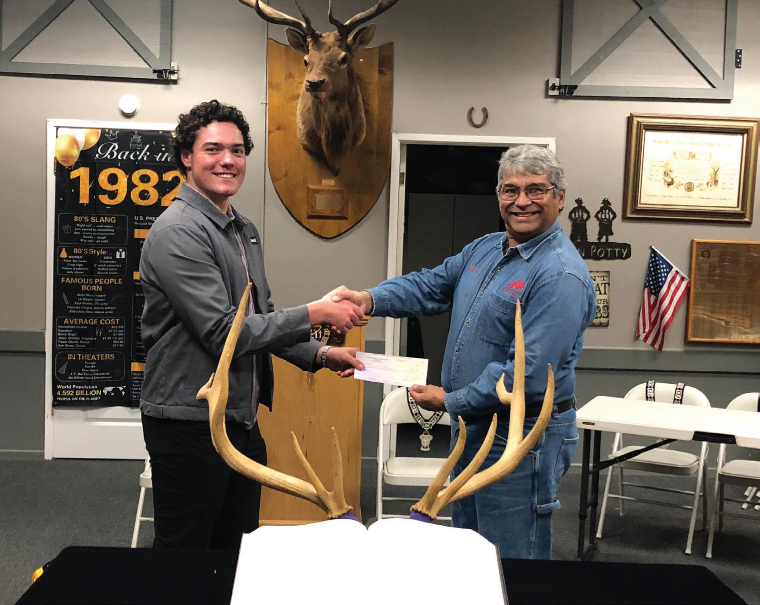 Santa Ynez High senior Rye Winans, the Santa Ynez Valley Elks Club November Student of the Month, receives his $100 check from Exalted Ruler Robert Ramirez. Photo Courtesy of Santa Ynez Valley Elks Lodge