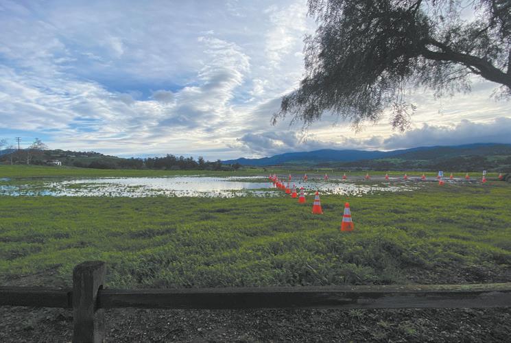 The lawn where the Solvang Tree Burn was to be held on Jan. 9 is shown waterlogging due to recent rains. The Tree Burn was canceled due to the wet conditions. Photo courtesy of Solvang Parks and Rec City skips 2026 tree burn due to heavy rainfall