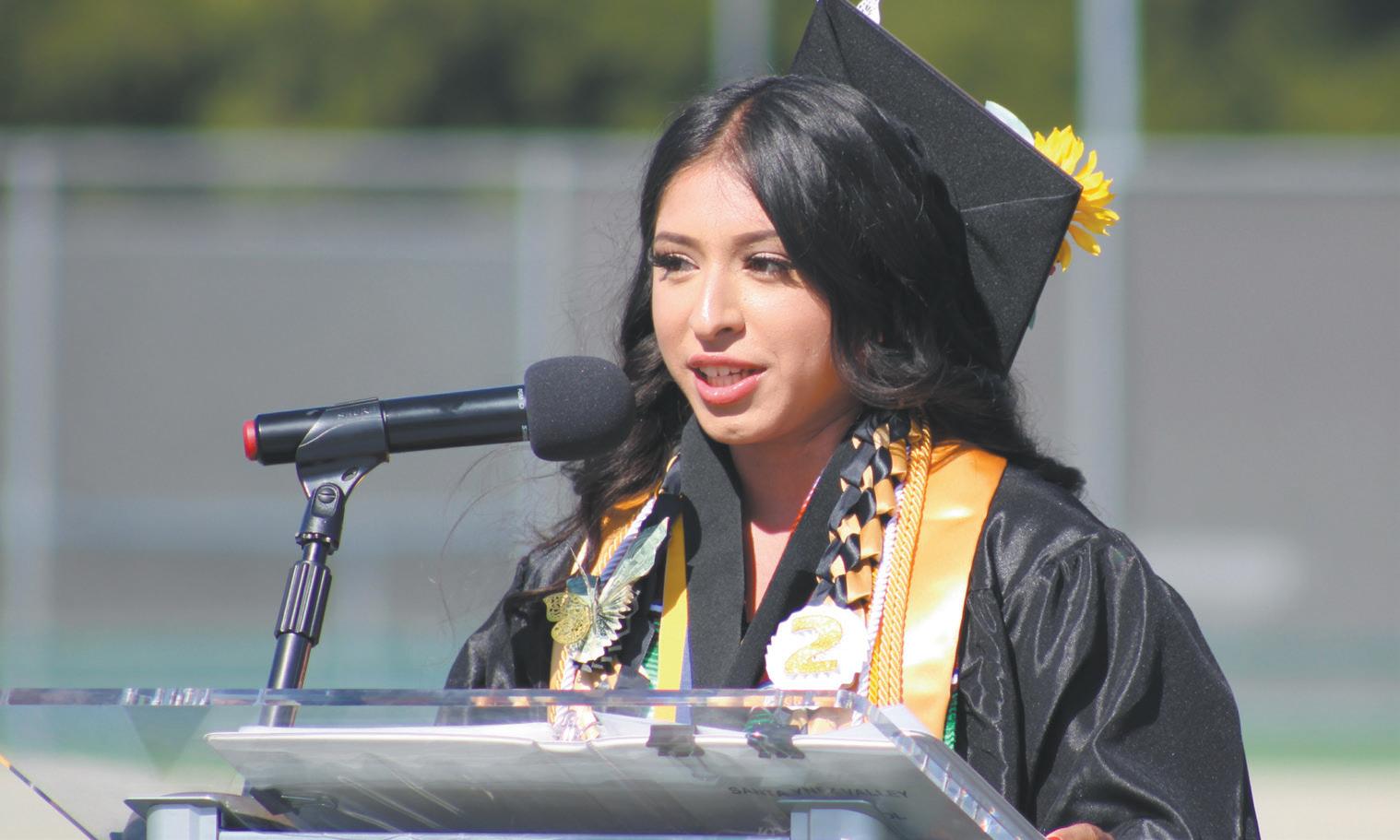Santa Ynez High graduating senior Lizbeth Ortega Aguilera gives her commencement address during the May 31 ceremony at Rio Memorial Field.