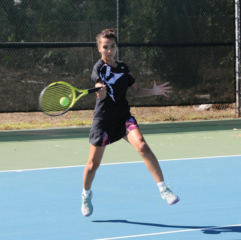 Murial Buran delivers a forehand shot during practice. Buran is one of many new players looking to make an impact for the Sharks this year.