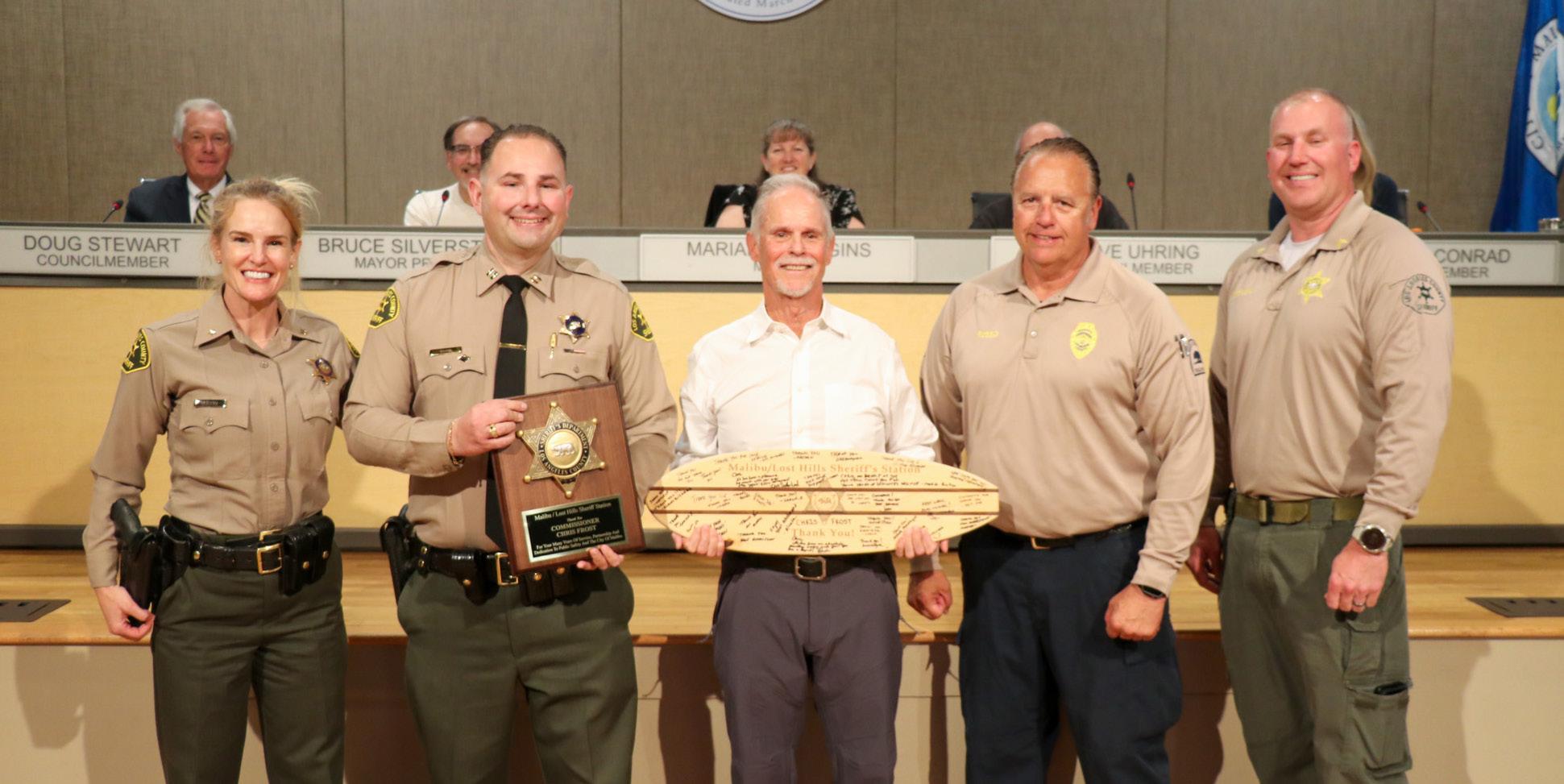 After 22 years, more than 300 meetings, countless behind-thescenes strategizing, ride-a-longs with Caltrans, reports, and public-facing volunteering, recent City Hall honoree Chris Frost has stepped down from the Malibu Public Safety Commission simply because, as he put it, “it was just time.”
