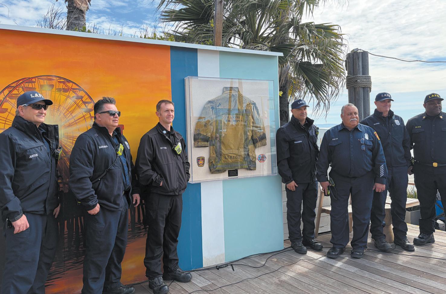 On Feb. 20, co-owner Jim Harris and members of his team visited Fire Station 23 in Pacific Palisades to unveil a memorial plaque honoring the firefighters who helped save the restaurant. The plaque, housed in a striking shadowbox, features a protective fire jacket worn by first responders as they battled the