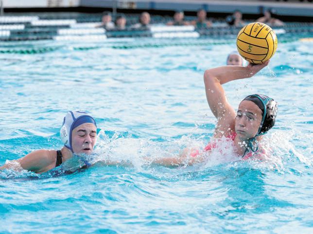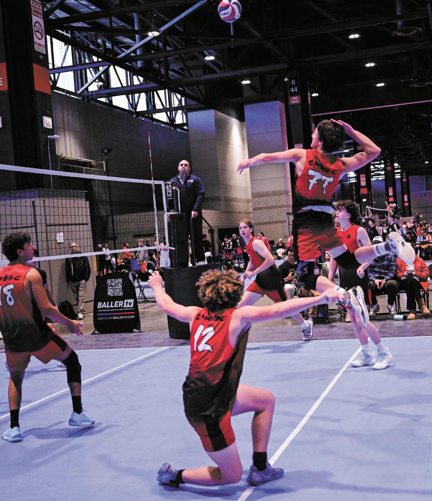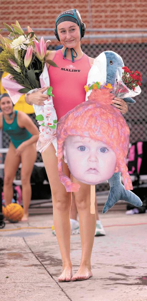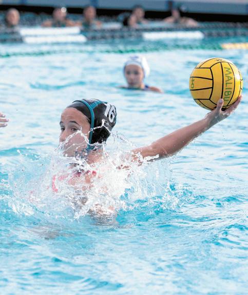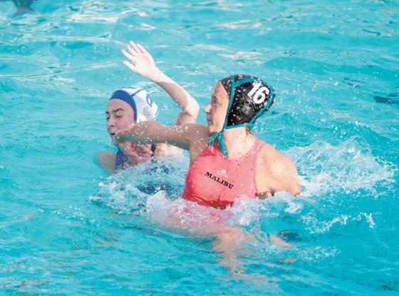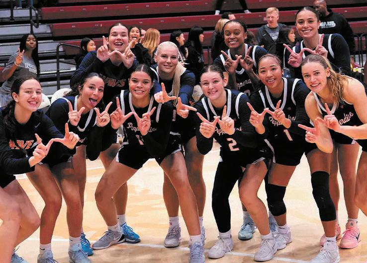 The squad’s practices end with a six-onsix scrimmage, and the competitions have been action-packed, with the volleyball rarely touching the gym court, explained Malibu senior outside hitter Keegan Cross, 18.