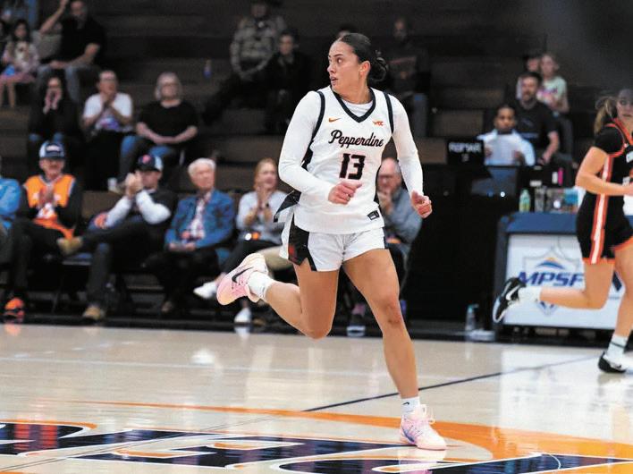 After junior guard Lina Falk hit two free throws, giving Pepperdine a 49-40 lead with 5:32 left in the third quarter, Guiney made a layup and then hit another 3-pointer, giving Pepperdine a 14-point advantage.