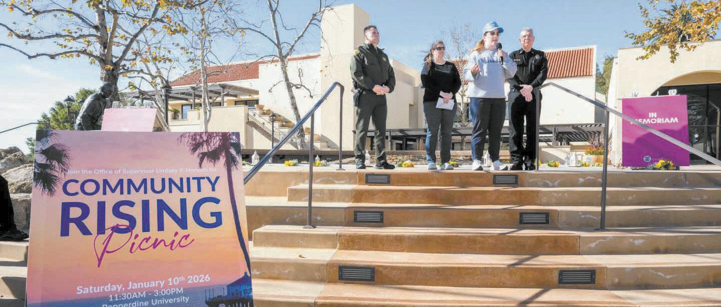 On Saturday, Jan. 10, Pepperdine University, in partnership with Los Angeles County Supervisor Lindsey P. Horvath and the City of Malibu, hosted the Community Rising Picnic, a free, familyfriendly event designed to honor resilience and provide meaningful connection for those impacted by the fires of 2025.