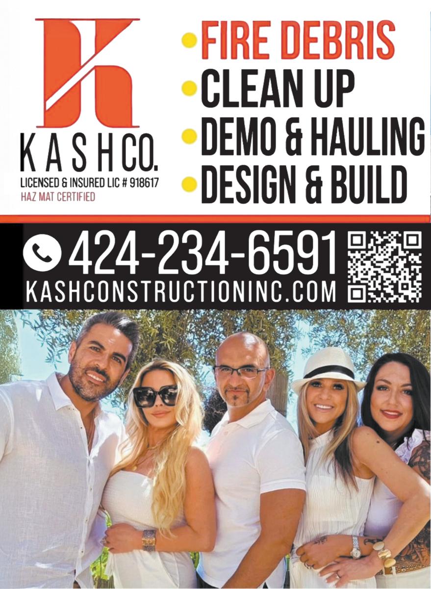 KANEROY and ASSOCIATES has been proud to serve Malibu & the Westside for the past 20 years, and look forward to putting it’s broad experience, creativity and craftsmanship to work for you on your next construction project. Kane Sickner 310456-6841, www.kaneroy. com. Lic.#569337-Bonded/ insured.