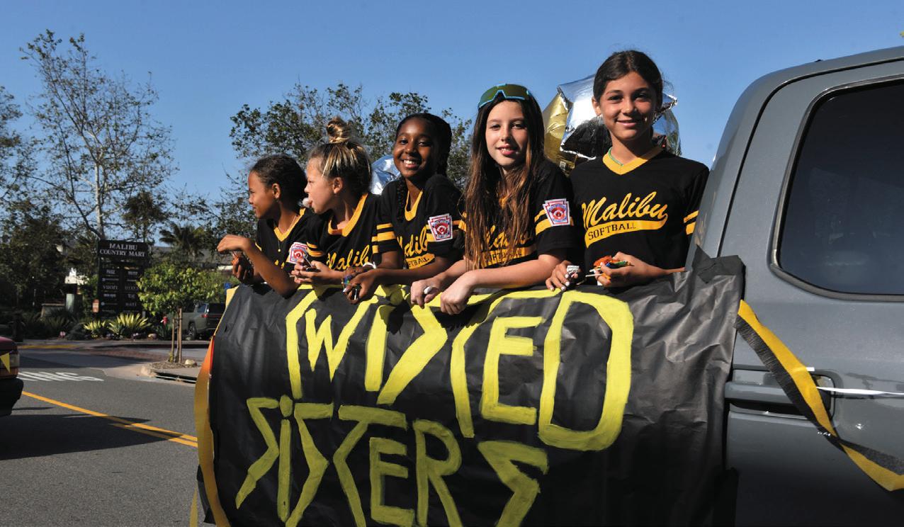 team ags were waved, balloons oated, and banner tassels waved on Saturday morning. Music, children’s laughter, and parent’s cheers lled the air as the parade got underway. e parade was led by a retruck from Malibu Fire Station 88 and closely followed by City Council and Malibu Little League board
