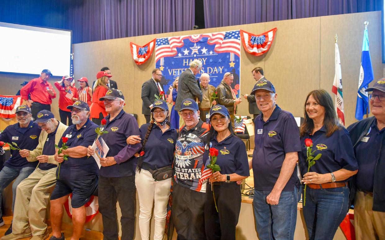 Members of the Malibu Navy League, Pepperdine University, the City of Malibu, and the Malibu Association of Realtors—including the event committee of the 25th Annual Malibu Veterans Day Public Ceremony, led by Ani Dermenjian (fourth from the left)—along with veterans honorees, pose for a group photo after Monday’s ceremony. Photo by Samantha Bravo/TMT.