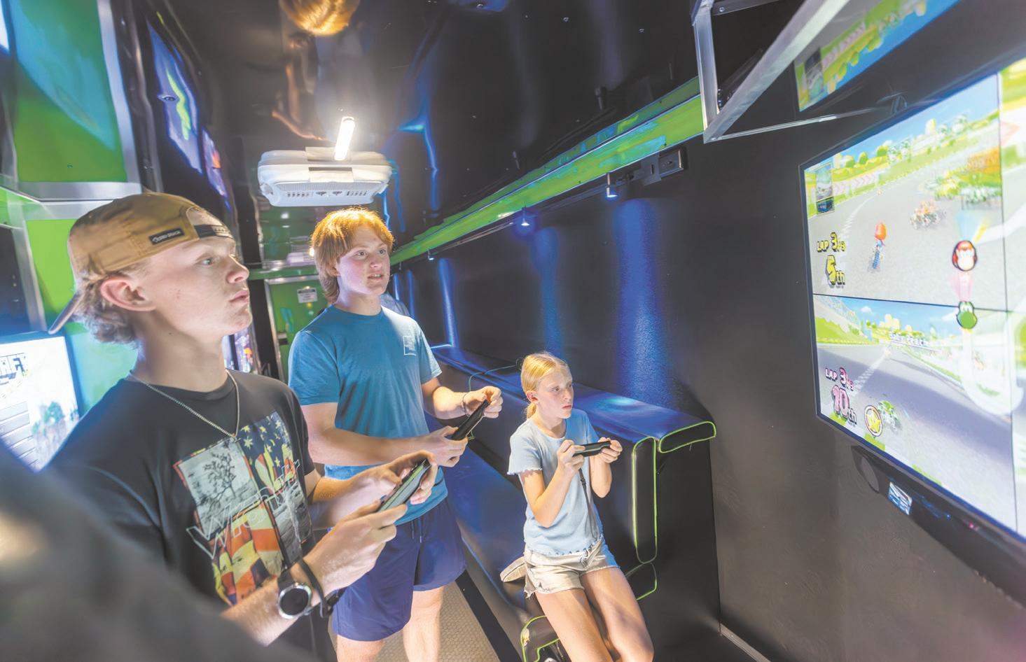 (Left) Old Dawgs, New Tricks performs during the Harvest of Hope at Nov. 3 at St. Aidan’s Episcopal Church in Malibu. (Right) A video game truck was on hand to provide entertainment to the young attendees at the Harvest of Hope event. Photos by Benjamin Hanson/TMT.