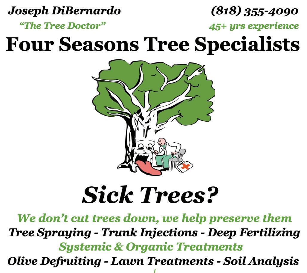 Four Seasons Tree Specialists - Sick Trees? We don’t cut trees down, we help preserve them. Tree Spraying- Truck Injections- Deep Fertilizing. Systemic & Organic Treatments. Olive Defruiting - Lawn Treatments - Soil Analysis. 45+ yrs experience. Call Joseph at 818355-4090
