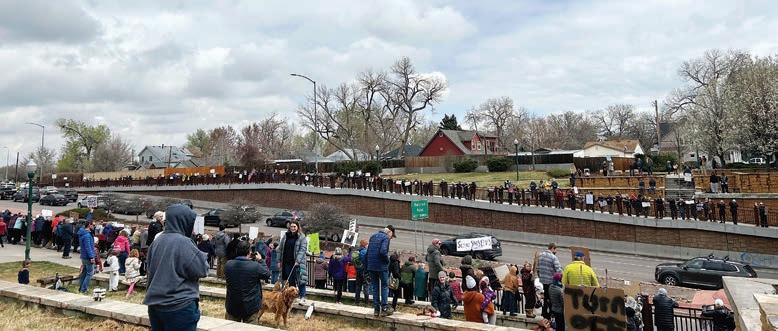 “It was thinking, ‘We really need to start doing something in Arvada,’ ” Malone said. “We’re big enough, and there’s a lot of interest. I said, ‘You know what, this weather looks awful, let’s do Arvada.’” Malone said that over 180 people have joined the group since the presidential election. e organization was started in 2016 and has over 700 members