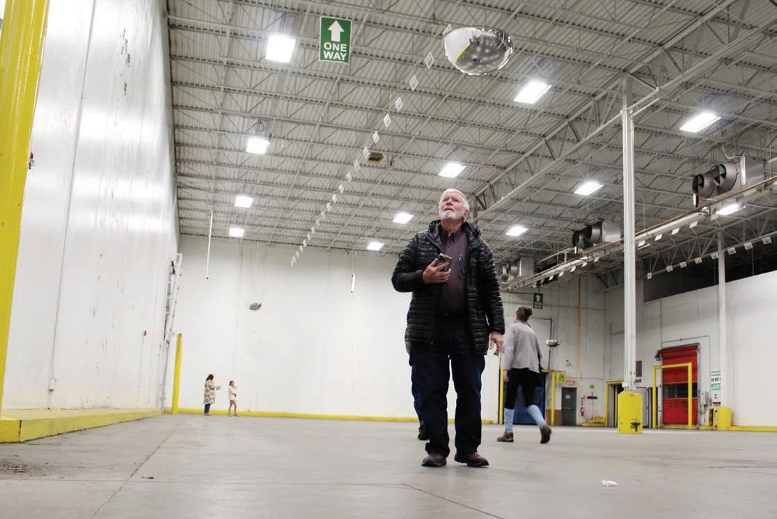 However, the second truck bay — which is behind the rst — will likely serve as storage. Because of the tall ceilings, JCPL could design the space to be two stories, as there’s already a mezzanine level that Wallace said was behind the rst truck bay’s walls. e only part visible from the truck bay oor was a series of loading doors midway up the wall.