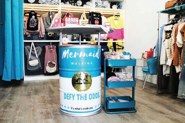 Larsen said her o beat sense of style has helped shape the distinct identity of Mermaid Walking, which o ers clothes and accessories that Larsen sources from the Los Angeles Fashion District.