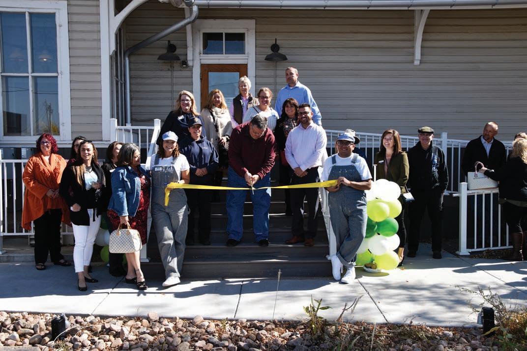 Chamber sta , board, and city o cials gathered to cut the ribbon.